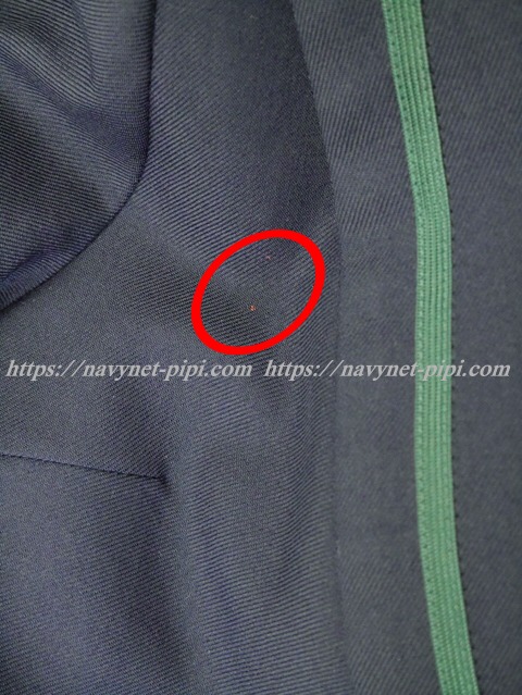 3年間の使用済み制服なので自然な使用感の傷みは若干あります☆丁寧に着ていた様子なのですが左袖口上に解れと右胸横に赤ペンの点シミ汚れがあります♪