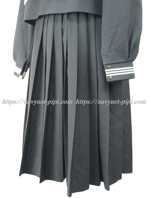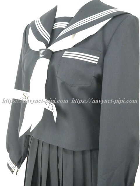 | 詳細/特徴 冬服3点セット (上着・スカート・指定スカーフ) ☆人気制服☆ 【スカーフは新品で白色の三角タイプで素材はナイロンのハネクトーンです】 人気の濃紺タイプのセーラー服セット♪ セーラー襟に白線3本入り・胸当てと胸ポケットに白線3本♪ スカーフ留めに校章刺繍入り☆ 左脇下ファスナー☆ スカートは濃紺の28本車ヒダ仕様のプリーツスカート♪ 左ポケット&ファスナー☆ ウエスト調整はアジャスタータイプ☆ |