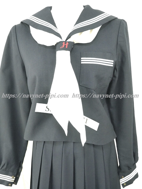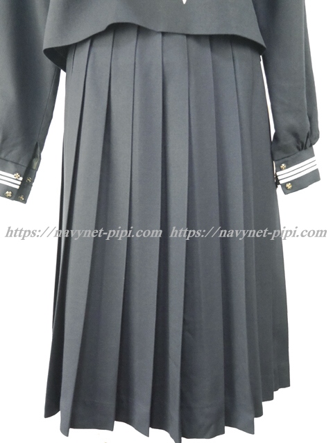 | 詳細/特徴 冬服3点セット (上着・スカート・指定スカーフ) ☆濃紺セーラー☆ 【スカーフはお古で白の三角スカーフになります】 濃紺の冬セーラー服上下セット☆ セーラー襟と胸ポケットと両袖口に白線3本☆ スカーフ留めに赤で校章刺繍入り♪ 左脇下ファスナー♪ スカートは24本車ヒダ仕様のプリーツスカート♪ 左ファスナー&ポケット☆ ウエスト調整はアジャスタータイプ♪ |