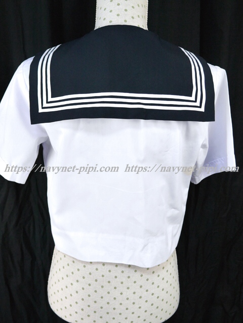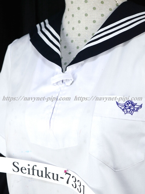 | 詳細/特徴 夏服(上着・半袖) 白の半袖セーラーです♪ 紺のセーラー襟に白線3本☆ 左脇下ファスナー・スカーフ留め付き 胸ポケットに校章刺繍入り♪ |