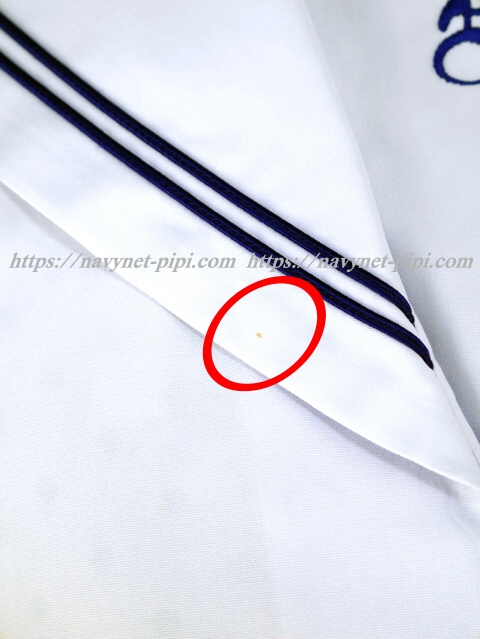 | 品質と状態 3年間の使用済み制服なので自然な使用感の傷みは若干あります☆特に大きく目立った傷みもシミ汚れは無いのですが厳しく言っちゃうとお写真のように襟元と左胸横に薄い小さなシミ汚れがあります☆ |