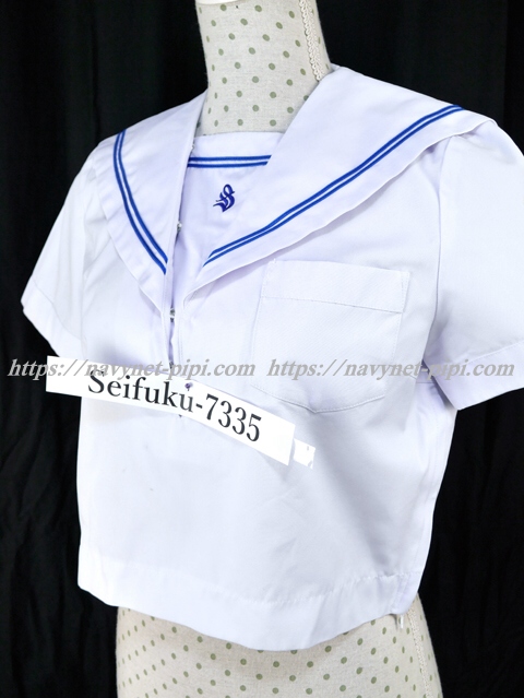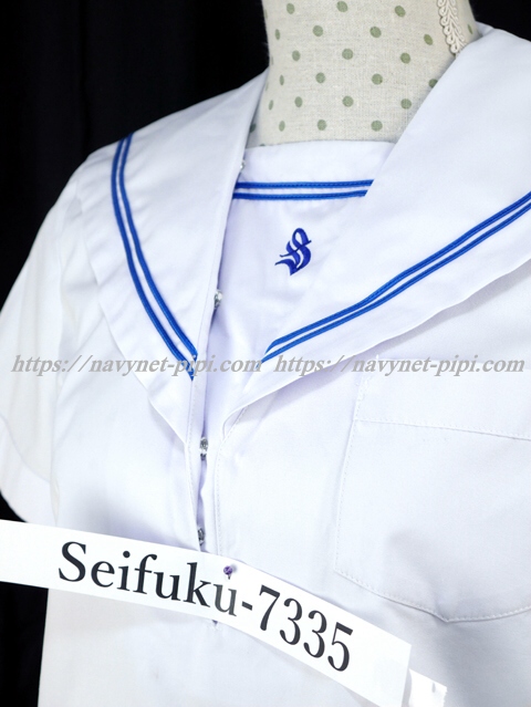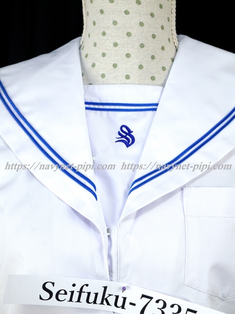 セーラー襟と胸当てに水色の丸ライン2本入り☆