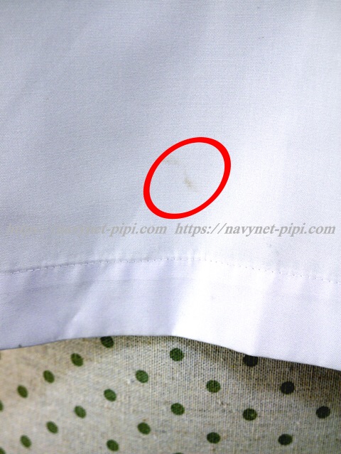 | 品質と状態 3年間の使用済み制服なので自然な使用感の傷みはあります。全体的に綺麗な状態なのですがお写真のように前裾上に薄シミがある状態です。 |
