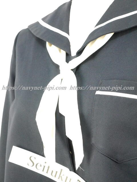 上着は濃紺でセーラー襟と胸ポケットと両袖口に白線1本♪