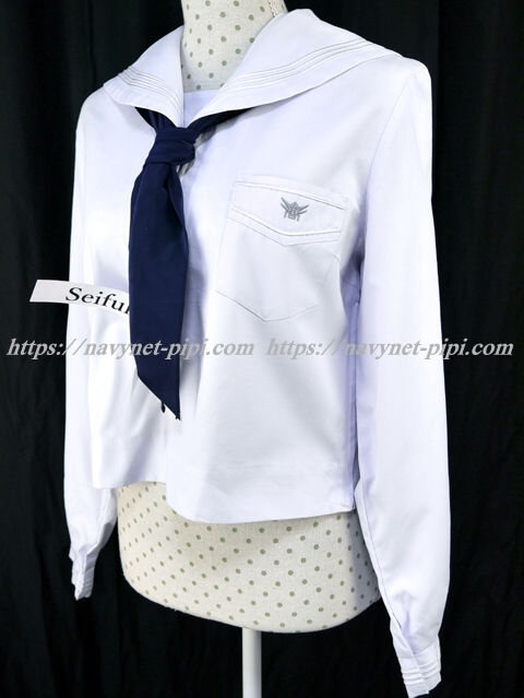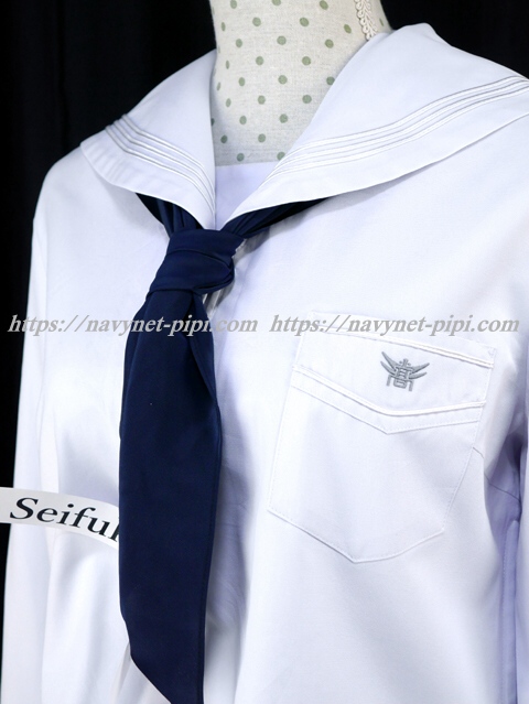 | 詳細/特徴 合服(上着・指定スカーフ) 綺麗 【スカーフはお古の三角スカーフ・素材はデシンです】 夏服セーラーセット♪ セーラー襟と胸ポケットに白線3本入り☆ 胸ポケットに校章刺繍・左脇下ファスナー☆ |