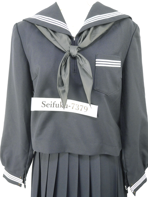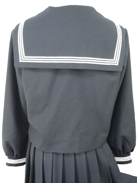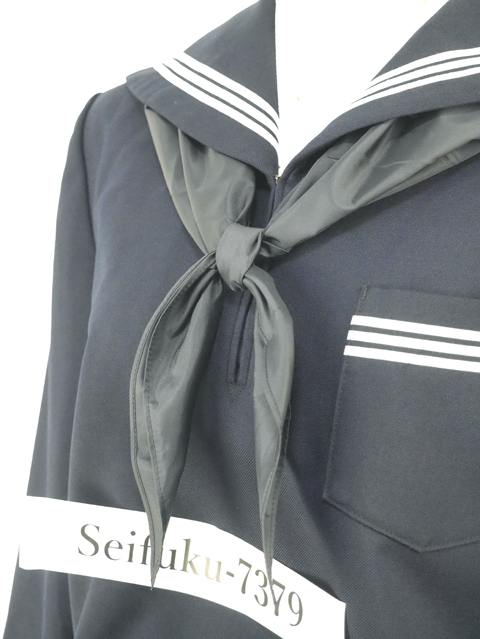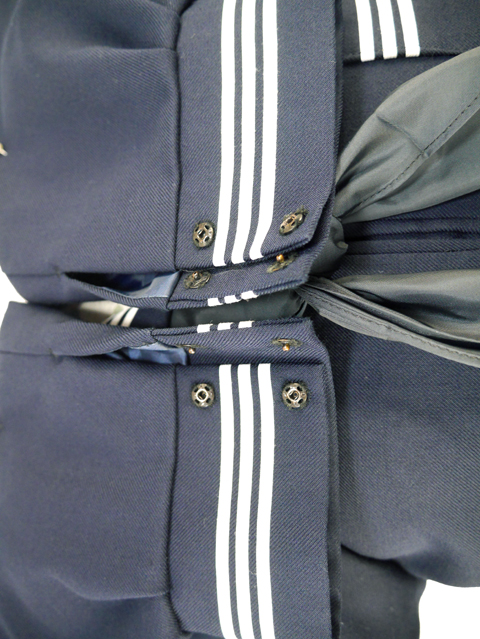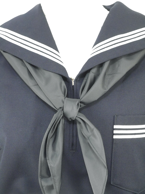 上着は濃紺でセーラー襟と胸ポケットと両袖口に白線3本入り☆