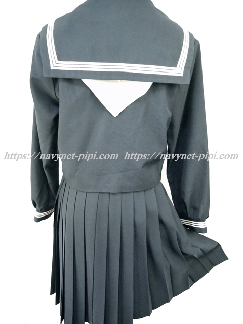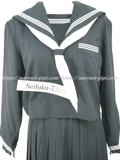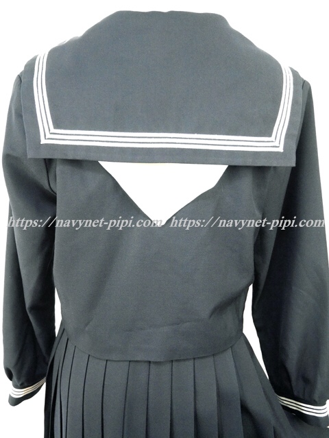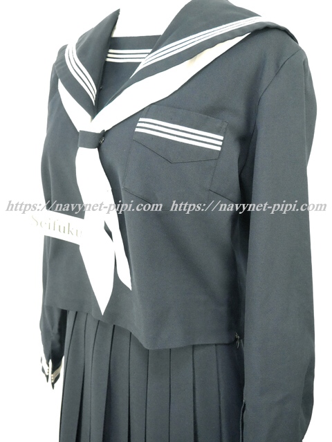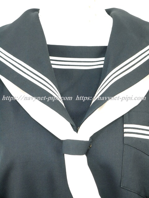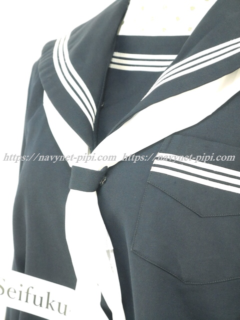 上着は濃紺でセーラー襟と胸ポケットと両袖口に白線3本入り☆