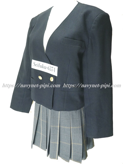 | 詳細/特徴 冬服3点セット 上着・長袖ブラウス・スカート (再委託品) ☆大きいサイズ☆ ブレザーは襟無しでゴールドボタンが特徴的☆ ブラウスは左胸ポケットに校章刺繍入り♪ スカートはグレー系チェックの20本車ヒダプリーツスカート☆ ウエストはアジャスター調整タイプ・左ファスナー ♪超ミニなので可愛いです♪ |