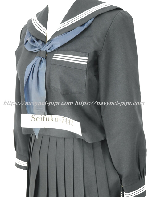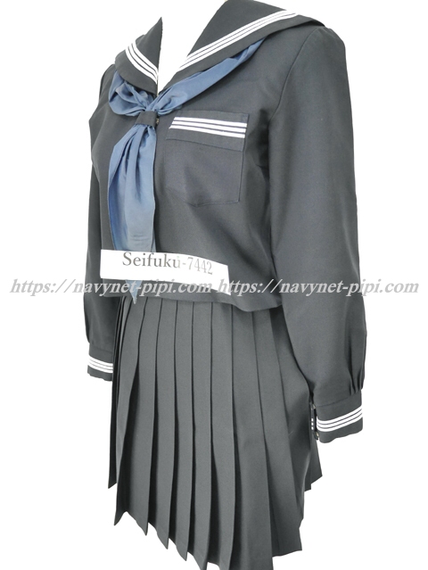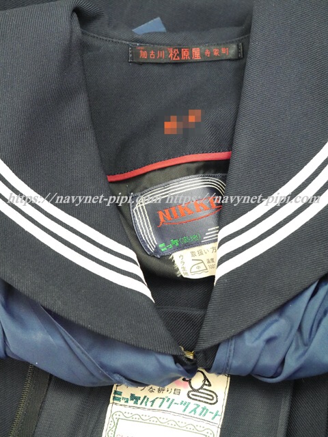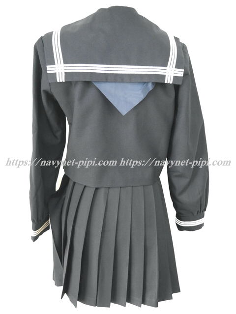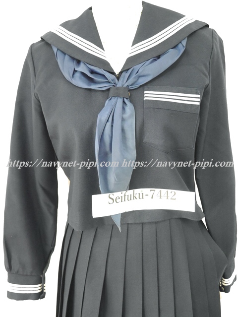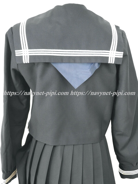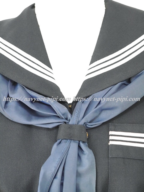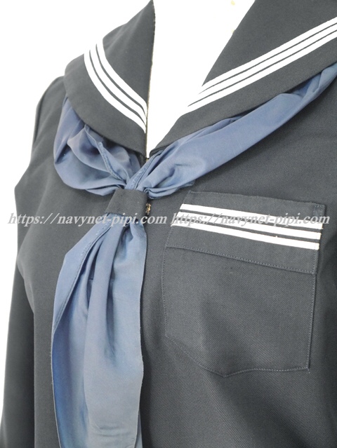 上着は濃紺でセーラー襟と胸ポケットと両袖口に白線3本入り☆
