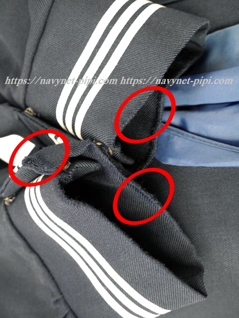 3年間の使用済み制服なので自然な使用感の傷みは若干あります♪丁寧に大切に着ていた様子なのですがお写真と動画のように両袖口と上に少し擦れ傷みがある状態の品質です♪ |