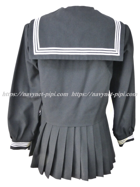 上着は濃紺でセーラー襟・胸当て・両袖口に白線3本入り☆