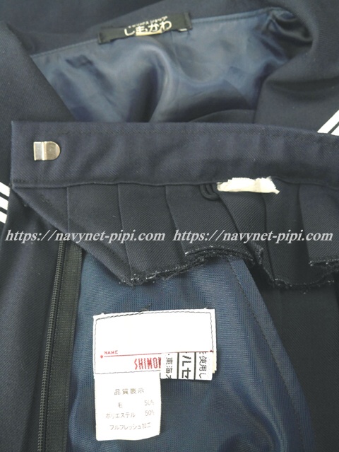 | 詳細/特徴 冬服3点セット (上着・スカート・指定スカーフ) ☆人気制服☆ マイクロミニ丈 【スカーフは新品で白色の三角タイプで素材はナイロンのハネクトーンです】 人気の濃紺タイプのセーラー服セット♪ セーラー襟に白線3本入り・胸当てと胸ポケットに白線3本♪ スカーフ留めに校章刺繍入り☆ 左脇下ファスナー☆ スカートは濃紺の24本車ヒダ仕様のプリーツスカート♪ 左ポケット&ファスナー☆ ウエスト調整はアジャスタータイプ☆ |