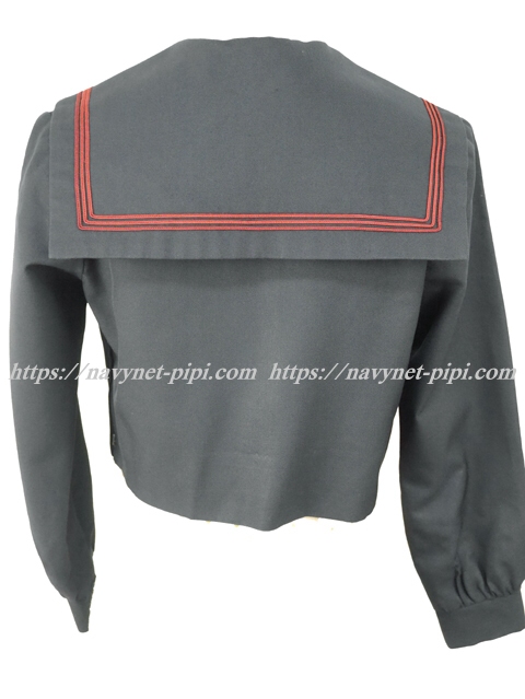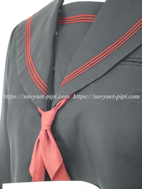 セーラー襟と胸当てにエンジ色ライン3本☆