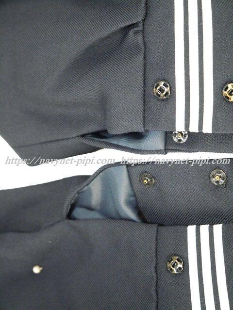3年間の使用済み制服なので自然な使用感の傷みは若干あります☆丁寧に着ていた様子で特に目立った傷みもシミ汚れも無いのですが厳しく言っちゃうと左袖口の白線にちょっぴり黒ずみ感がある状態です♪