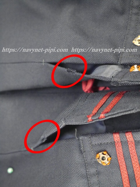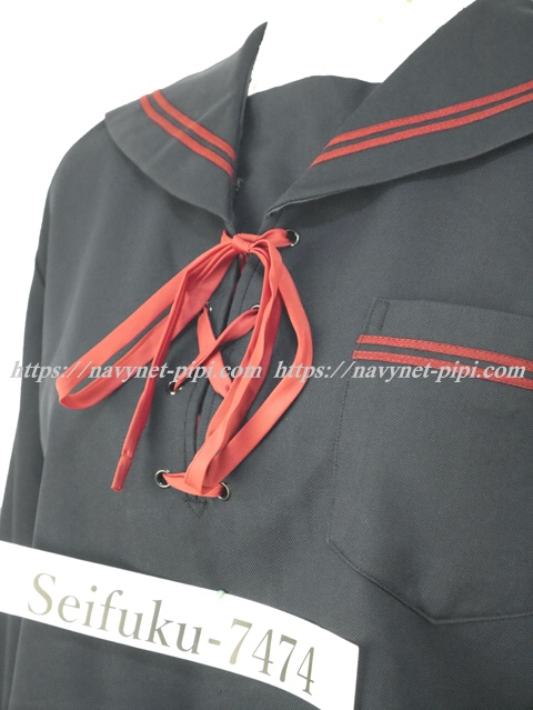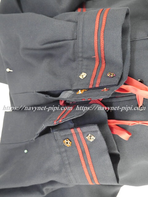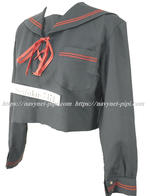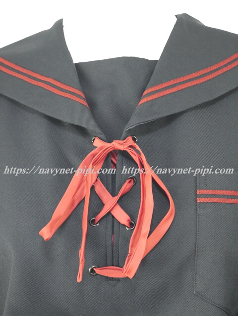 セーラー襟と胸ポケットと袖口に赤線2本入り☆