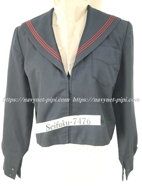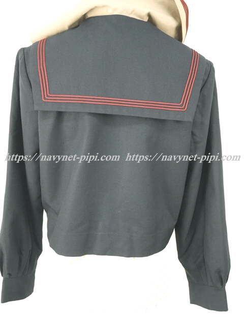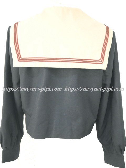 | 詳細/特徴 冬セーラー服 (上着・襟カバー付き) 濃紺のセーラー服♪ セーラー襟にエンジ色ライン3本入り☆ 胸当てに校章刺繍・前開きスナップ 胸ポケット・ネーム刺繍入り 襟カバーにエンジ色ライン3本入り♪ |