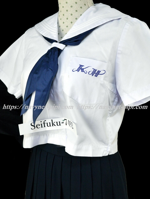 胸ポケットの青い校章刺繍がポイント♪