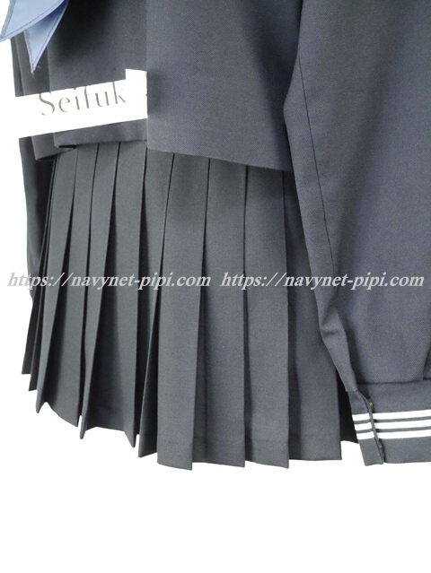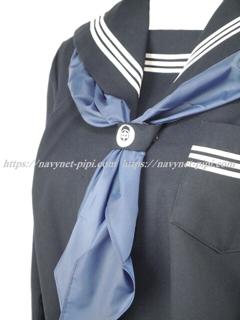 | 詳細/特徴 冬服上下3点セット (上着・スカート・指定スカーフ) マイクロミニ丈 【スカーフは新品のハネクトーン三角スカーフです】 上着はセーラー襟、胸当て、胸ポケット、両袖口に白線3本 スカーフ留めに白で校章刺繍入り♪ スカートは濃紺の28本仕様の車ヒダプリーツスカート♪ 左ファスナー&ポケット☆ ウエスト調整はアジャスタータイプ☆ |