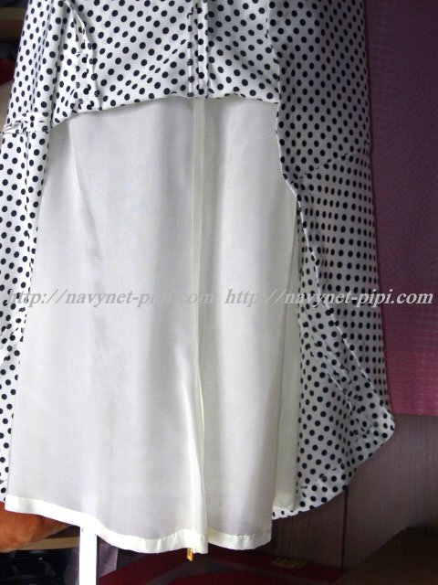 オフホワイトで黒のドッド柄(水玉模様)入の