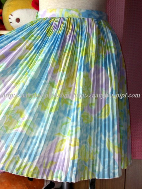 鮮やかなカラーのシフォン素材のアコーディオンプリーツスカート☆
