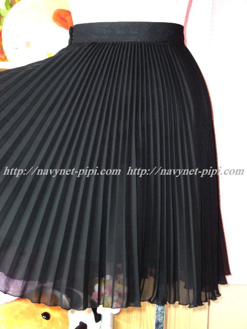 ブラックでシフォン素材の素敵なアコーディオンプリーツスカート♪