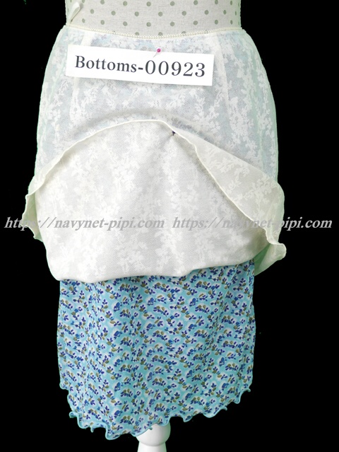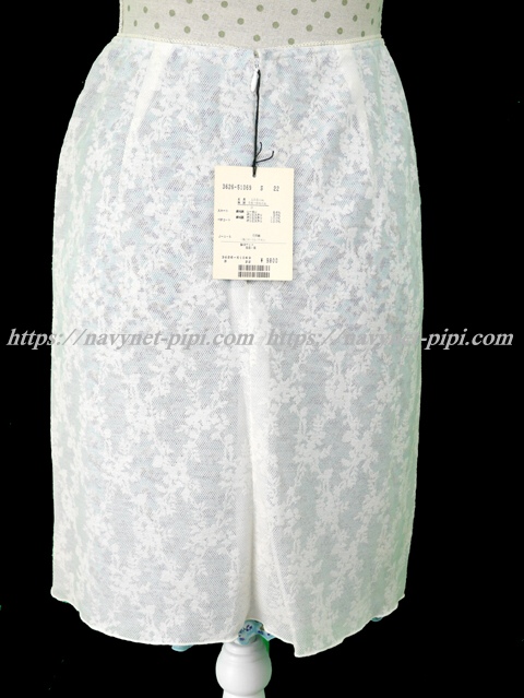 白いレースが表面に施され、ブルーの花柄模様の裏地が可愛いスカート☆